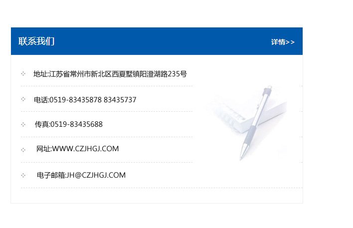 地址:常州市新北區友邦商務大廈1幢16、17層  電話:0519-85101652  傳真:0519-85112595  郵編:213022  網址:www_cz-jiayue_cn.jxwdqj.com  郵箱:xiajifengaa@163.com